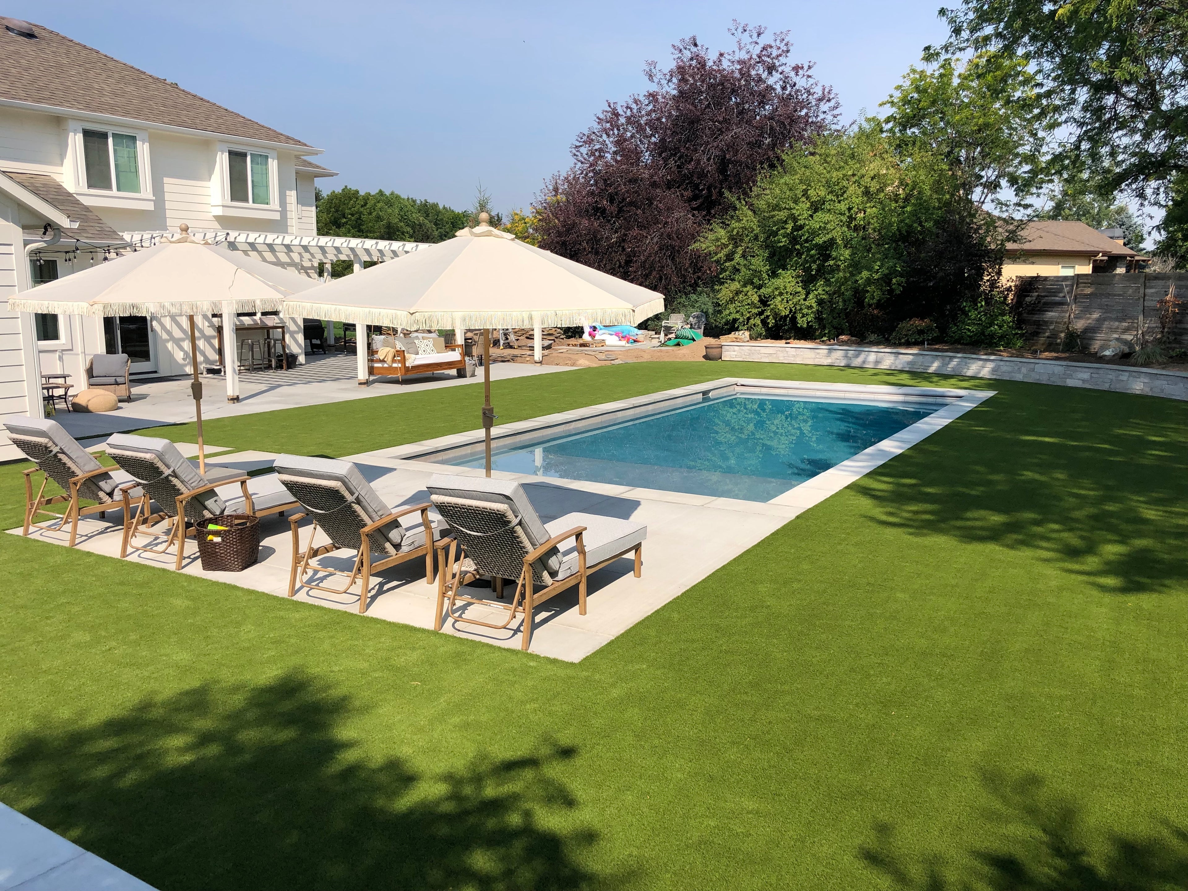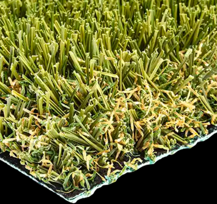 Highly realistic turf, green with tan blades for a soft, natural aesthetic in Idaho's dormant winters.